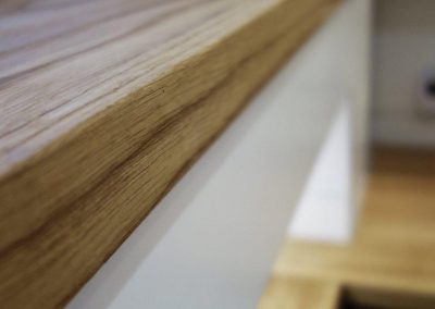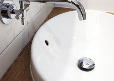 Sanitu jsme po schválení cenové kalkulace objednali u našeho dodavatele, nábytek zaměřili a zadali do výroby. Dřevěný parapet a rám zrcadla na míru vyrobil náš kamarád a spolehlivý truhlář. Dále si majitelka přála renovovat starší šatní skříně, které měla v chodbě. Nebyly sice nové, ale měli nadčasový a jednoduchý vzhled. Nechali jsme je nastříkat zvoleným odstínem barvy v lesku a připevnili nové nadčasové úchytky.