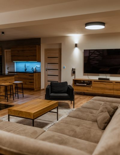 V roce 2021 jsme započali rekonstrukci domu, která trvala několik měsíců. Celkový facelift domu posunul vzezření původního socialistického rázu stavby k modernímu horskému stylu. Rodina si přála maximálně dům využívat na víkendové sportovní aktivity.